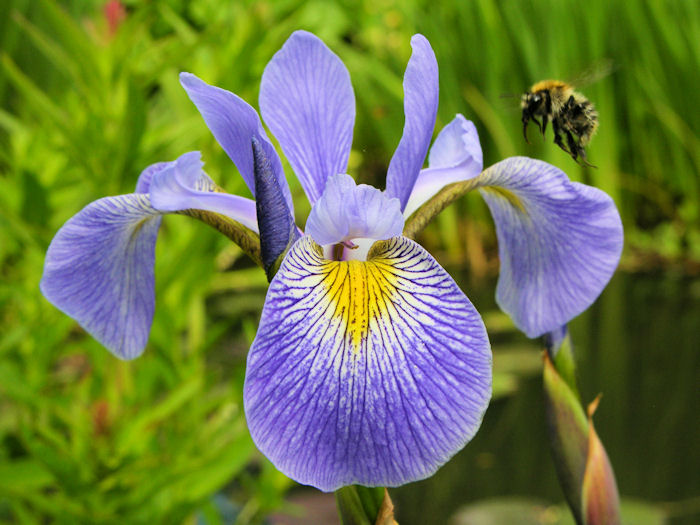 Die Amerikanische Sumpf-Iris (Iris virginica) bekommt Besuch