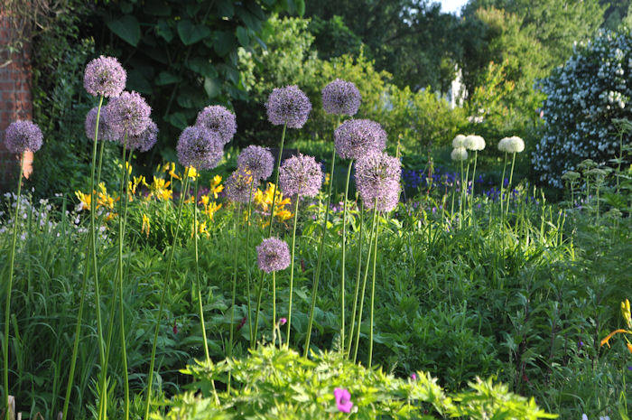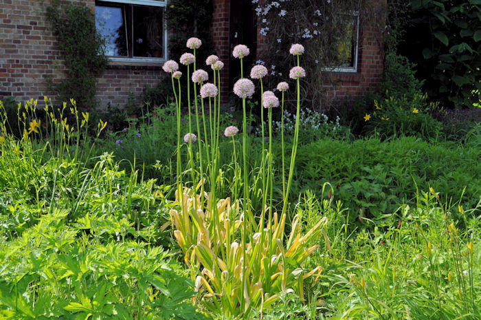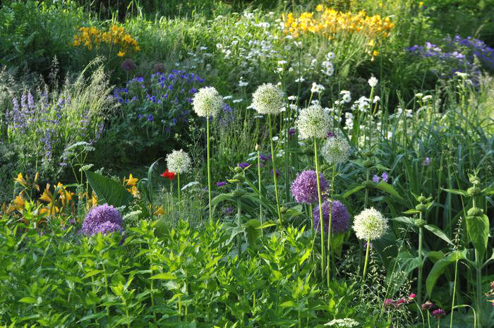 Verschiedene Riesenlauche bereichern die Wiese im Juni u. a. mit ihrer Höhe.