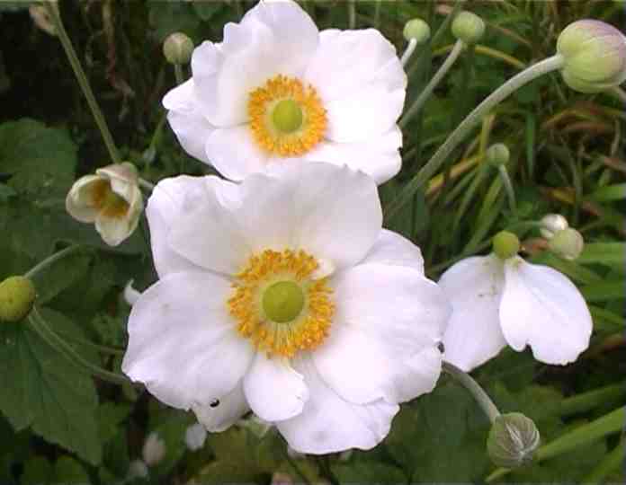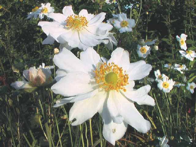 Herkunft; sie kommen aus Ostasien. Sie blühen im September. Die Sorten sind recht alt, wie z.B. 'Honorine Joubert', 1858, weiß, einfach; 'Wirbelwind', 1887, weiß, halbgefüllt und 'Königin