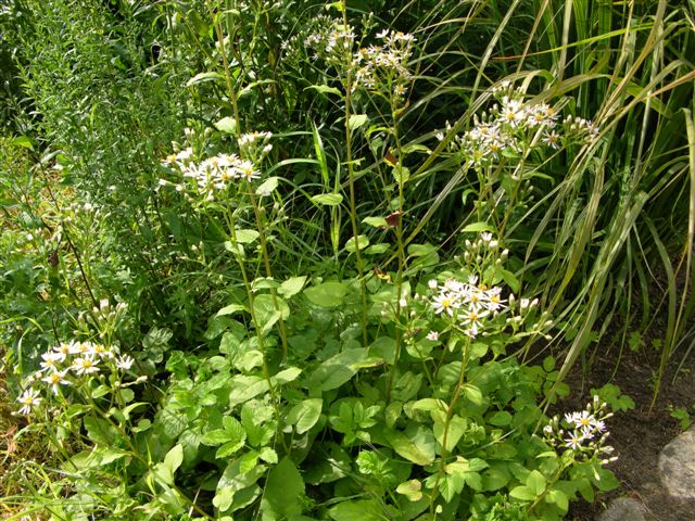 Aster macrophyllus 'Albus', Herzblatt-Aster gefunden. Die Blätter sind deutlich herzförmig. Andere Quellen berichten von zwei Arten, die aber schwer zu unterscheiden seien.