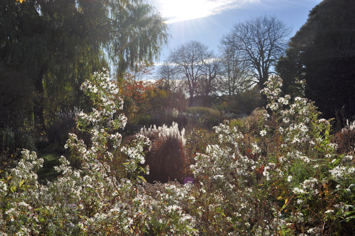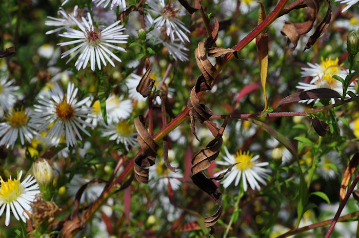 Aster simplex blüht auch noch Anfang November, wenn die Blätter der