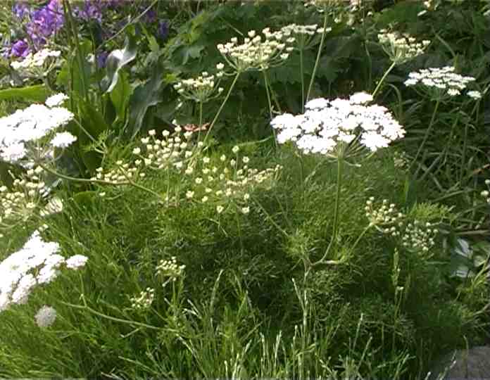 Athamanta turbith, der Augenwurz, kommt aus den Ostalpen und dem Balkan. Da er zugleich und genauso, wie der Giersch blüht, habe ich ihn weggegeben. Er war auch recht klein, so dass ein Ernten der Blätter für duftige Sträuße, wie in einem Buch beschrieben, kaum in Frage kommt.