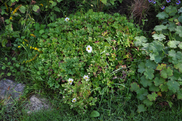 Feldsteintreppenstufen und blühte sehr reichlich. Im normalen Staudenbeet ging sie unter