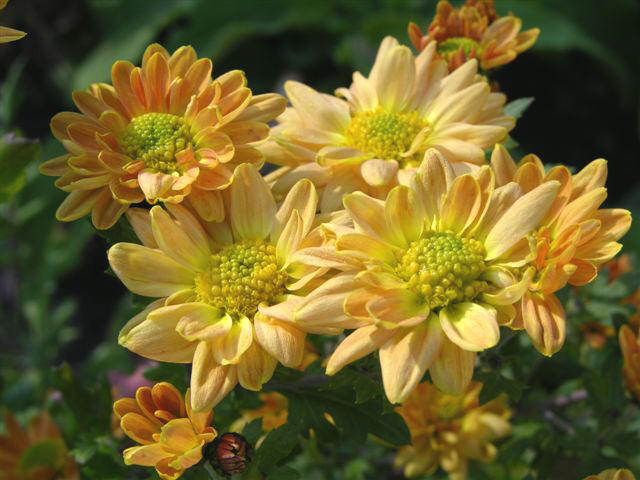 Gartenchrysantheme mit der Zeit in einer größeren Gruppe erblüht?