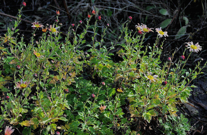 Chrysanthemum-hortorum-Sorten mit der Wildart Chrysanthemum koreanum, um