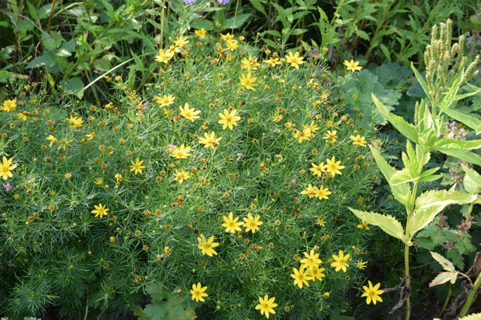 Coreopsis verticillata, das kniehohe Quirlblättrige Mädchenauge kommt aus