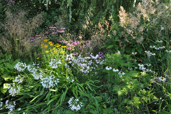 Agapanthus, Echinacea und Rudbeckia im Wurzeldruck einer