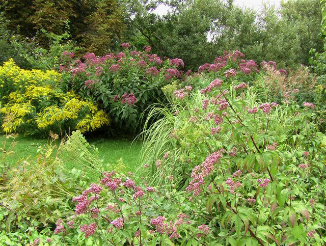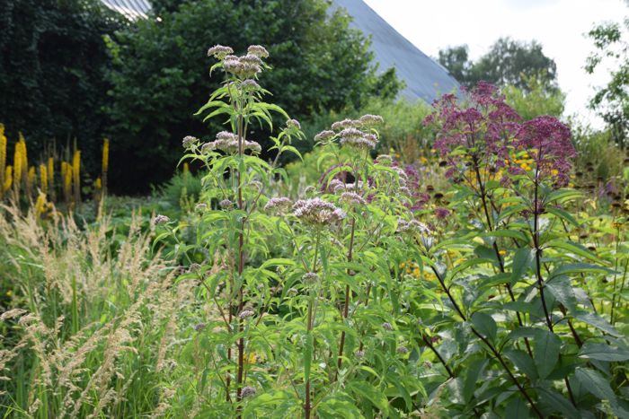 Rechts E. fistulosa 'Augustrubin' und links E. cannabinum.