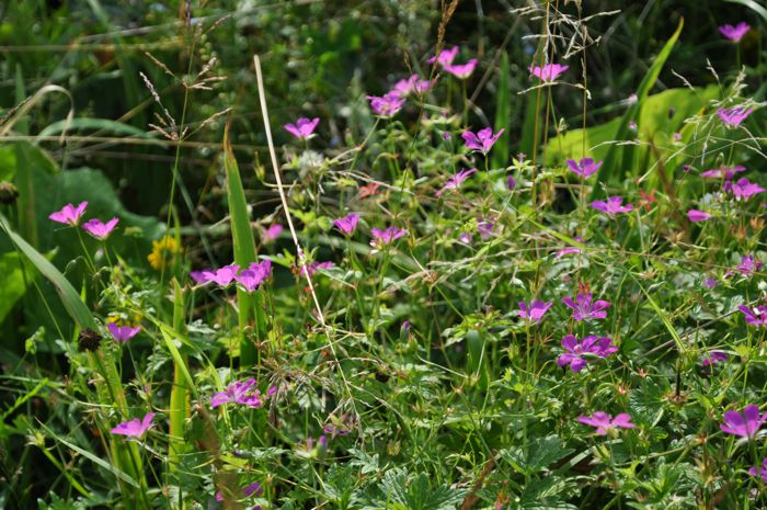 Geranium palustre, der kaum kniehohe Sumpf-Storchschnabel kommt in