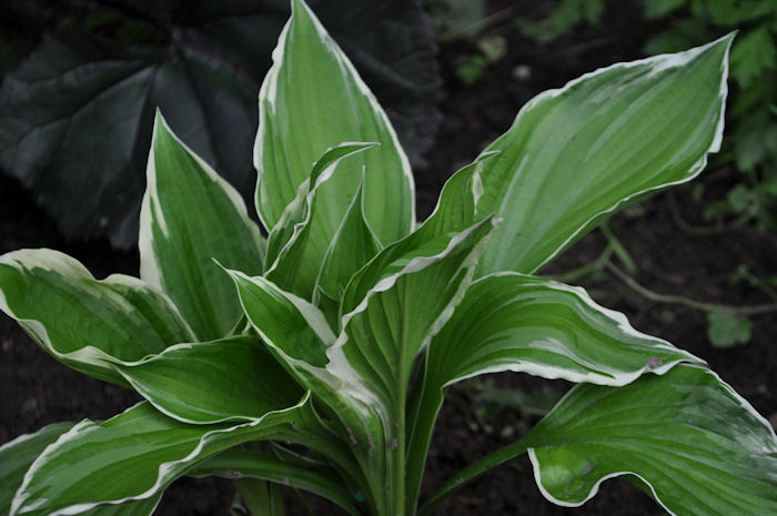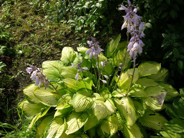 als Sorte 'Aureomaculata' den Namen weiße Grünrandfunkie. Sie