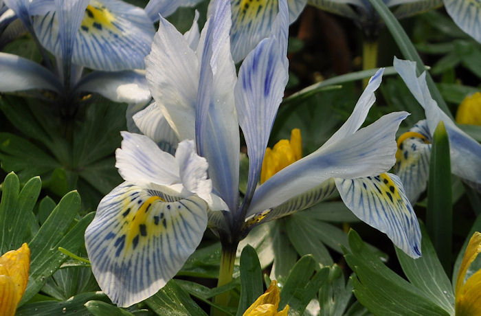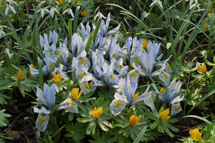 zusammen mit den anderen Zwergiris, Winterlingen und Schneeglöckchen