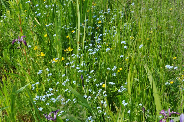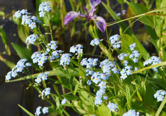 Myosotis palustris, das kaum kniehohe Sumpfvergißmeinnicht kommt in