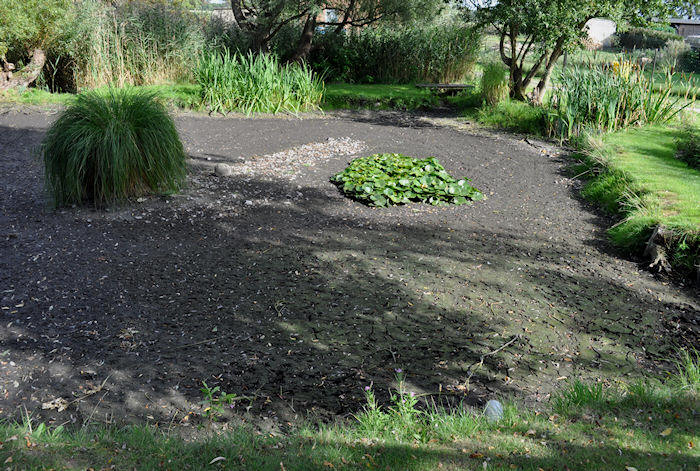 abgepumptem Teich kann man sehr schön sehen, wie aus einer