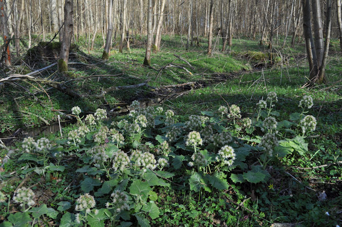 Petasites albus, die kaum hüfthohe Weiße Pestwurz
