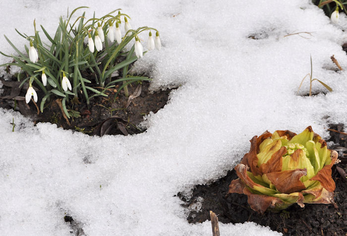 Garten. Sobald der Schnee getaut ist, kommen die Blüten zum Vorschein.