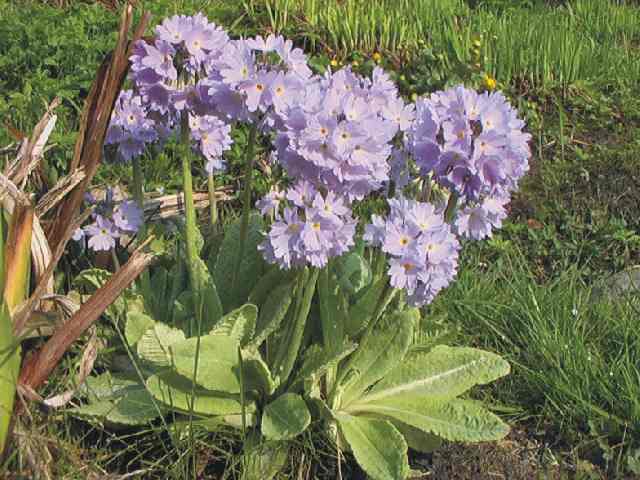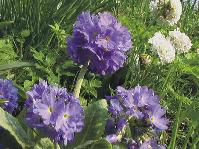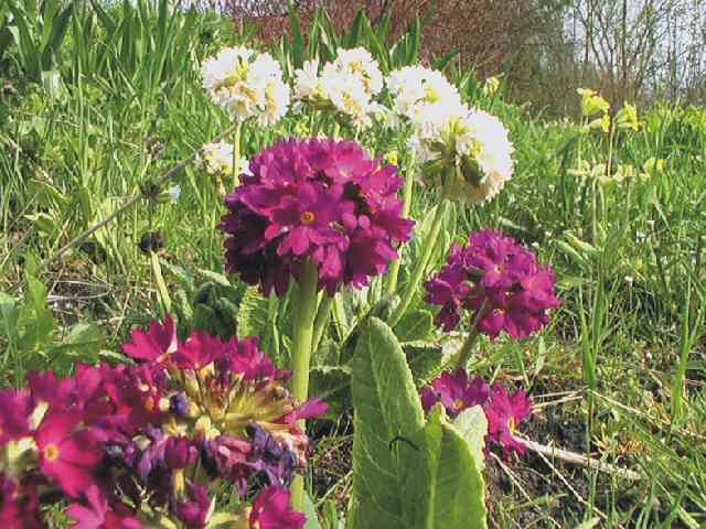 auch rötlich sind die Farben der Ballprimeln. Sie stehen bei mir recht