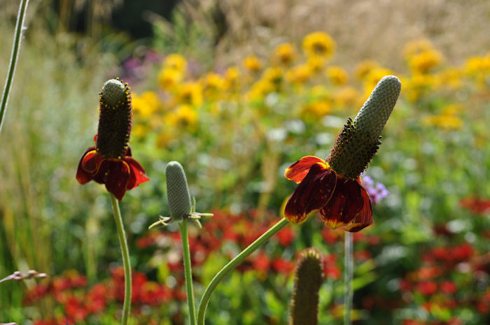 Ratibida columnifera, der kniehohe Prärie-Sonnenhut oder Prärie-Zapfenblume, kommt aus den Prärien des östlichen Nordamerika.