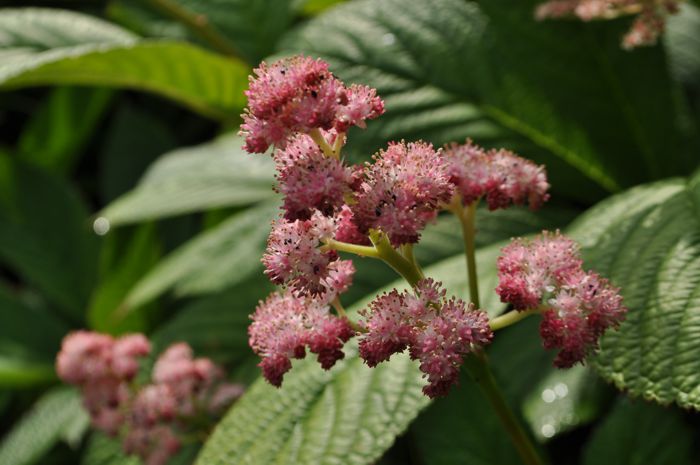 besonders kräftig-rosa Blüten. Sie benötigt wie alle Rodgersien frische bis feuchte Böden