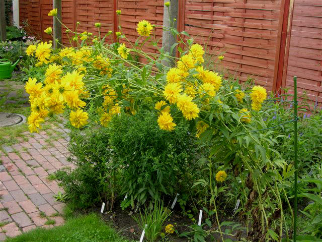 "Schlanke Helene" bezeichnet. 'Goldball' ist die mannshohe, gefüllte
