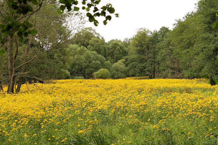 Ein riesiges Vorkommen von Rudbeckia laciniata im Pulsnitztal, NSG Königsbrücker Heide,