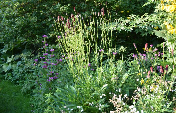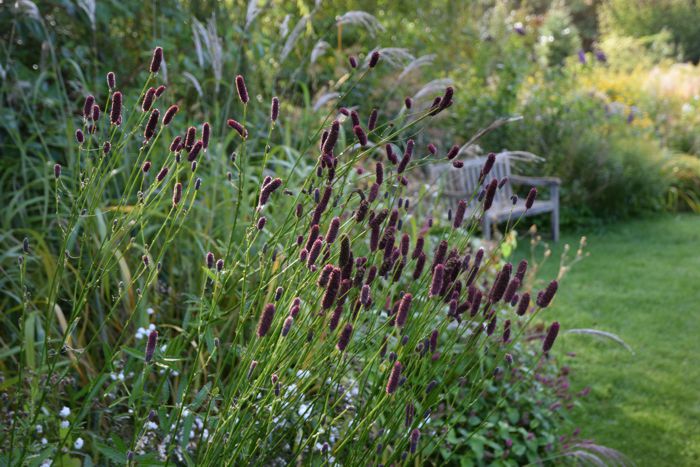 der brust- bis mannshohe Spätblühende Wiesenknopf kommt aus Asien. Er blüht im
