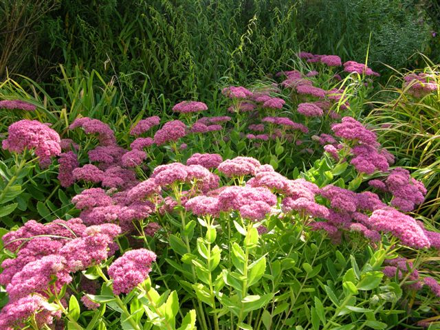 'Septemberglut'. 'Herbstfreude' blüht etwas später als die