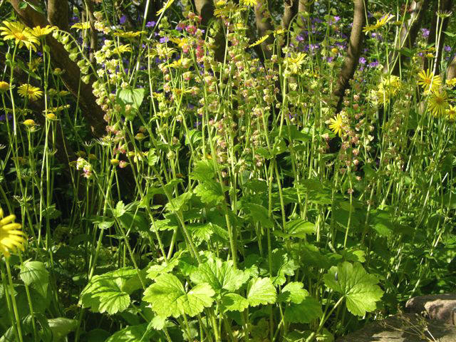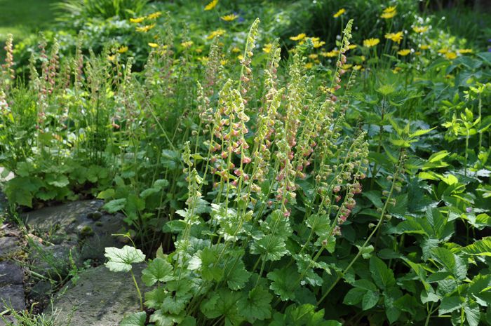 Tellima grandiflora, die kaum kniehohe Falsche Alraunwurzel, kommt von