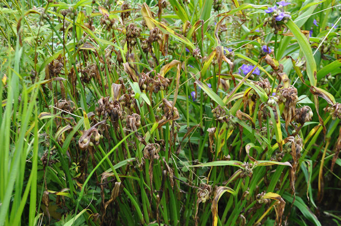 kniehohen Dreimasterblumen stammen u. a. von Tradescantia virginica aus den USA.