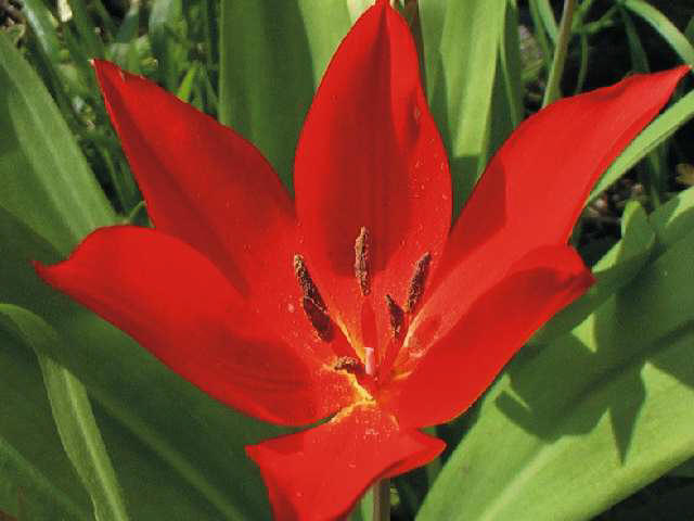 scharlachrote Blüten, wie diese Wildtulpe aus Zentralasien. Da die