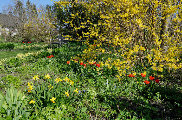 Stängel. Sehr schön unter gelb blühenden Forsythien im April/Mai.