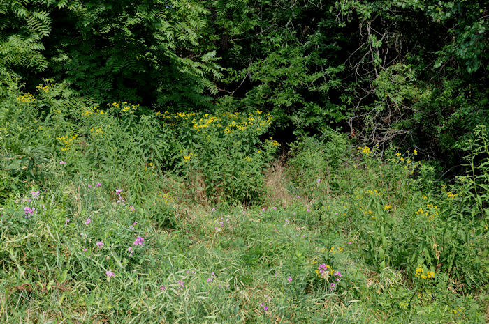Verbesina alternifolia, der mannshohe Gelbe Kronbart kommt aus der Hochgrasprärie Nordamerikas. Wir fanden ihn auf dem Blue Ridge Parkway,